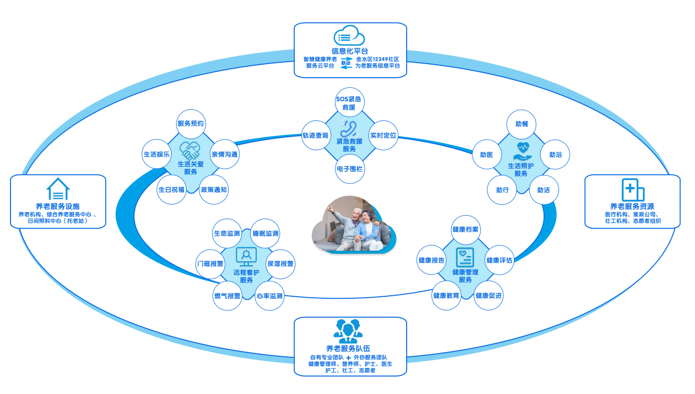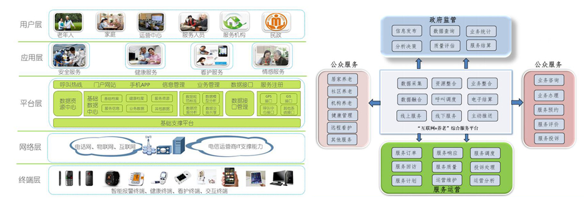 大象通信將"民政養(yǎng)老業(yè)務(wù)綜合監(jiān)管平臺"、"智能養(yǎng)老應(yīng)用平臺"集成到一起,面向"全國居家和社區(qū)養(yǎng)老改革試點城市"以及其他政府主要領(lǐng)導(dǎo)重視養(yǎng)老工作的城市,貼近當?shù)氐酿B(yǎng)老現(xiàn)狀、業(yè)務(wù)需求、管理需要進行定制開發(fā),形成具有當?shù)靥厣?互聯(lián)網(wǎng)+養(yǎng)老"綜合服務(wù)平臺,構(gòu)建因地制宜的智能養(yǎng)老應(yīng)用體系,發(fā)展"互聯(lián)網(wǎng)+養(yǎng)老"新業(yè)態(tài)、新模式,助力養(yǎng)老服務(wù)高質(zhì)量發(fā)展、高水平監(jiān)管。 "互聯(lián)網(wǎng)+養(yǎng)老"綜合服務(wù)平臺架構(gòu) "互聯(lián)網(wǎng)+養(yǎng)老"綜合服務(wù)平臺功能視圖 |